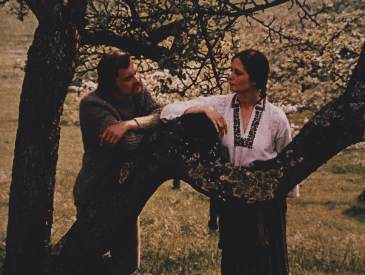 Ivan Mykolaichuk himself played one of the lead roles in the film—that of the village heartthrob Hryhir. The role of Orysia was played by the legendary actress Halyna Sulyma, who would go on to appear in a number of landmark works of Ukrainian cinema, including “The Last Bunker” (1991), “Famine-33” (1991), “Marrying Death” (1992), “Fuchzhou” (1993), and “The Seventh Route” (1997). The film’s cinematographer is Yurii Harmash, with whom Mykolaichuk had already worked on “Babylon XX”.