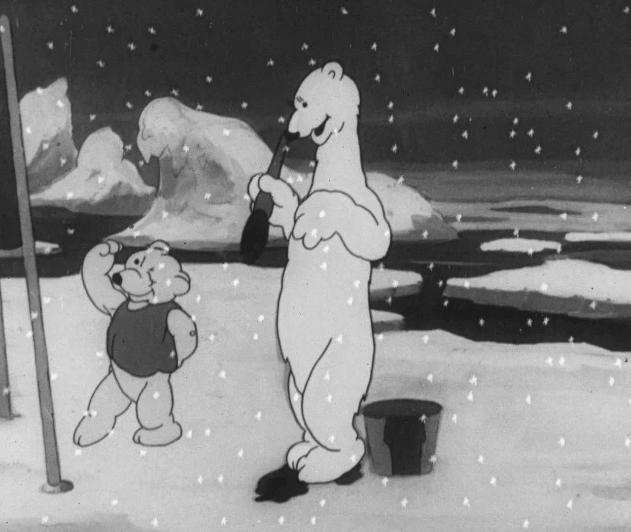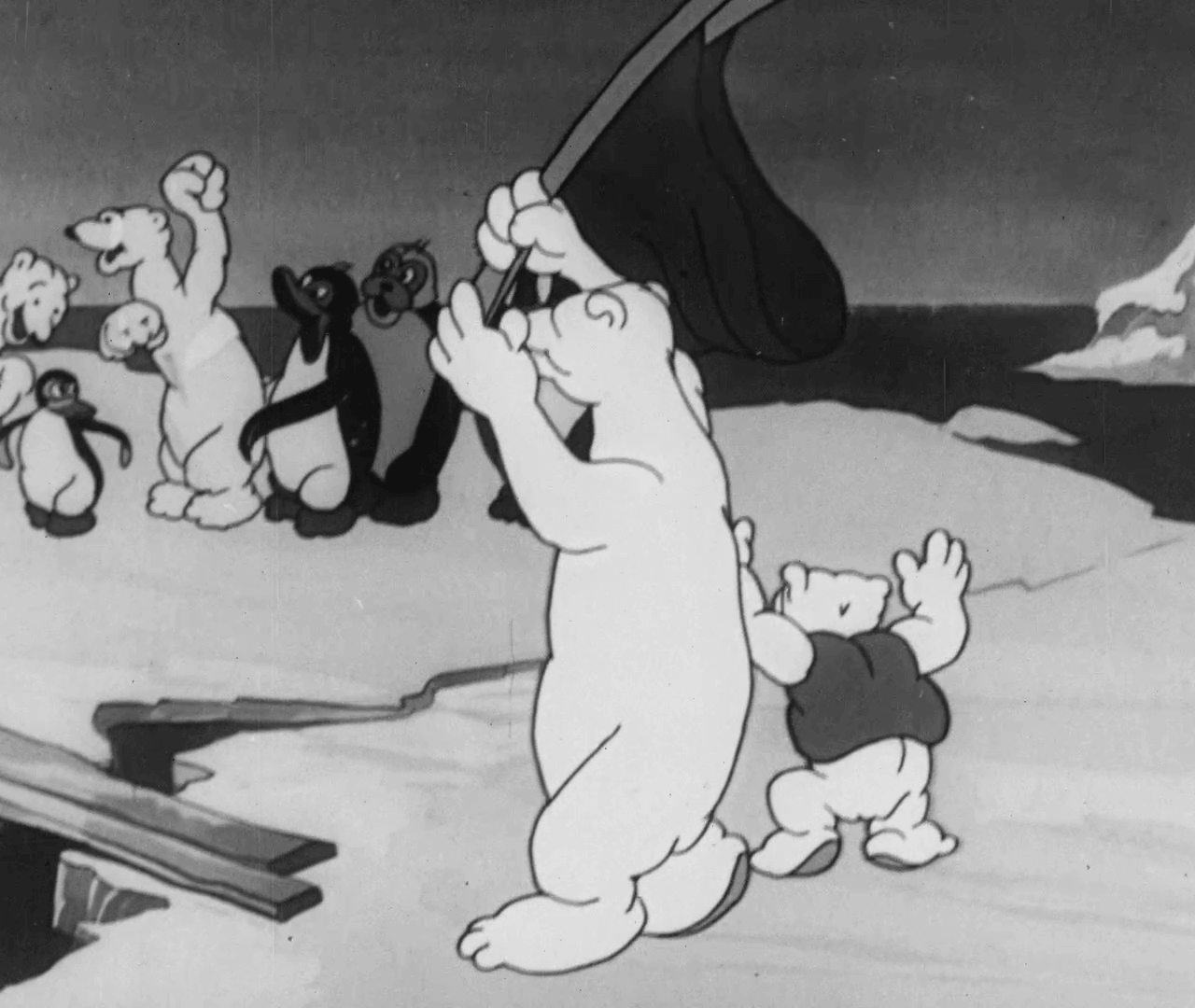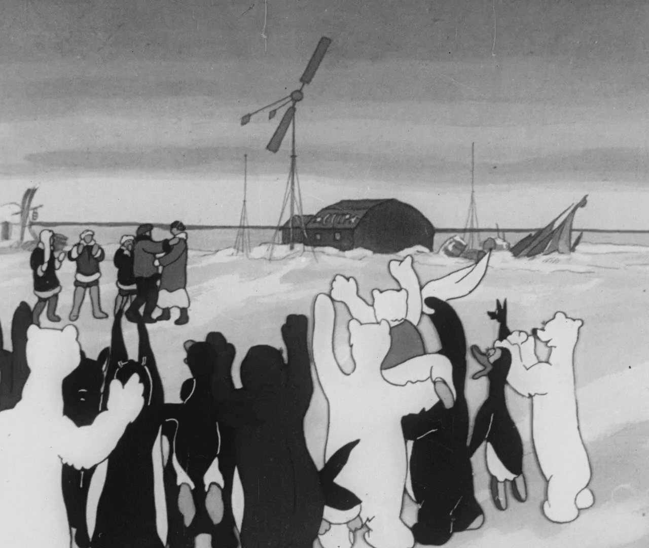 Анімаційна історія про те, як звірі з Антарктиди радісно вітають радянських полярників на чолі з дослідником Іваном Папаніним. Тварини оголошують полярників хазяїнами полюсу та урочисто передають їм свої ресурси. Попри ідеологічний зміст, фільм був створений у стилістиці тогочасної американської анімації, не поступаючись їй ані складністю малюнка, ані технікою виконання. Стрічка стала однією з останніх робіт кіностудії перед вимушеною майже 20-річною паузою.